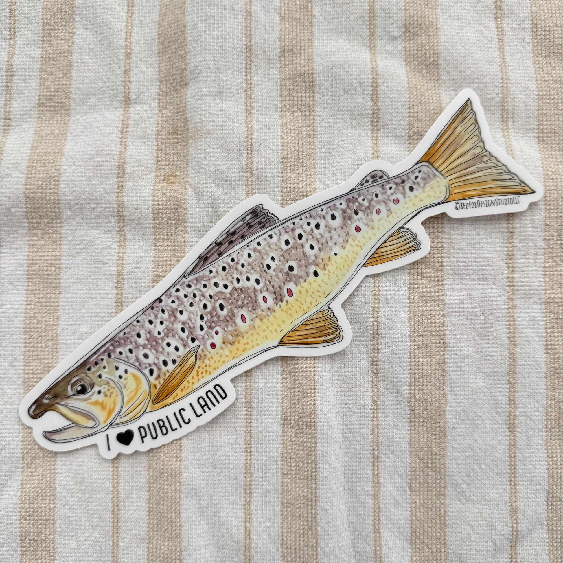 Big "I Heart Public Land" Brown Trout Sticker